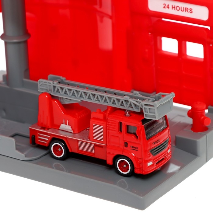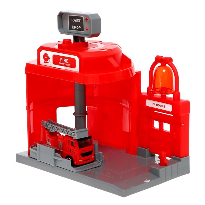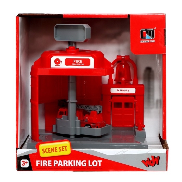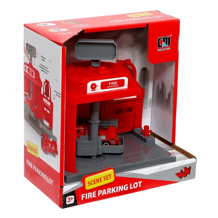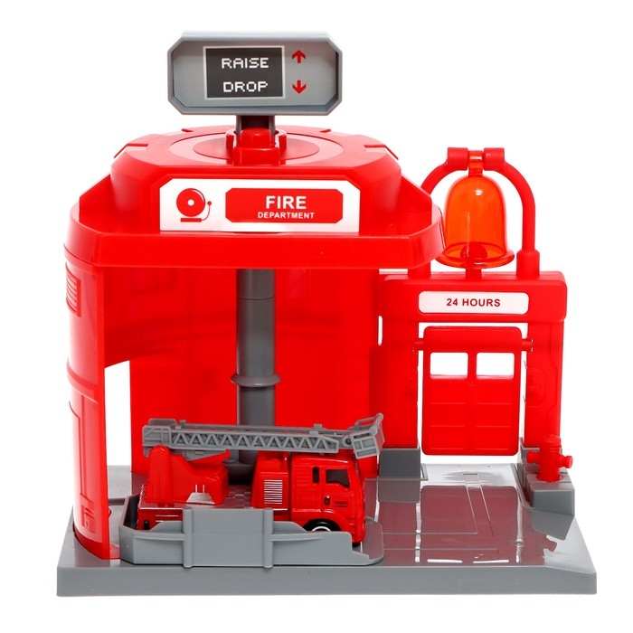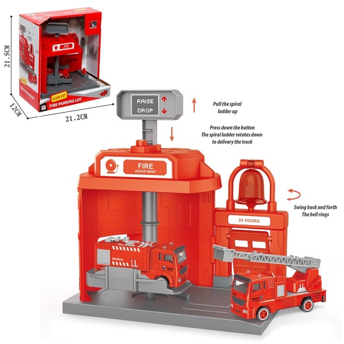 Парковка «Пожарная», с подъёмом, машинка опускается с кнопки, звонит колокол, МИКС