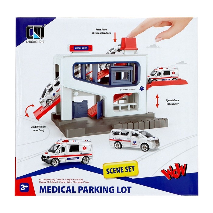 Парковка «Скорая», подъёмный механизм, 1 машинка в комплекте, МИКС