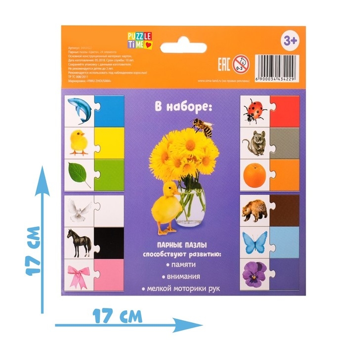 Парные пазлы помогут развить логику, внимание, пространственное мышление и мелкую моторику.