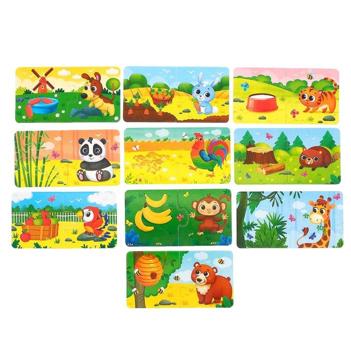 Собирая эти пазлы, ребёнок узнает больше об окружающем мире и научится складывать целое изображение из двух частей.