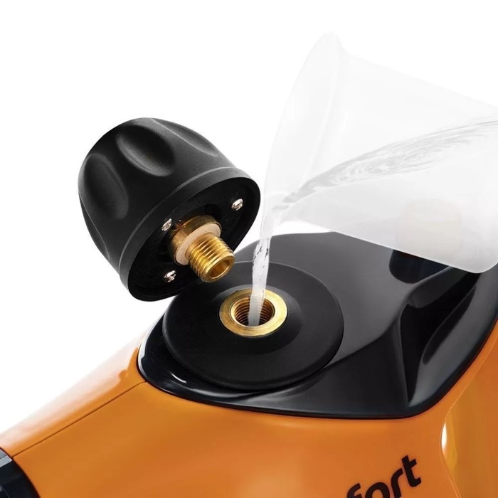 Пароочиститель Kitfort КТ-9140-2, 1050 Вт, 0.45 л, 29 г/мин, нагрев 4 мин, чёрно-оранжевый