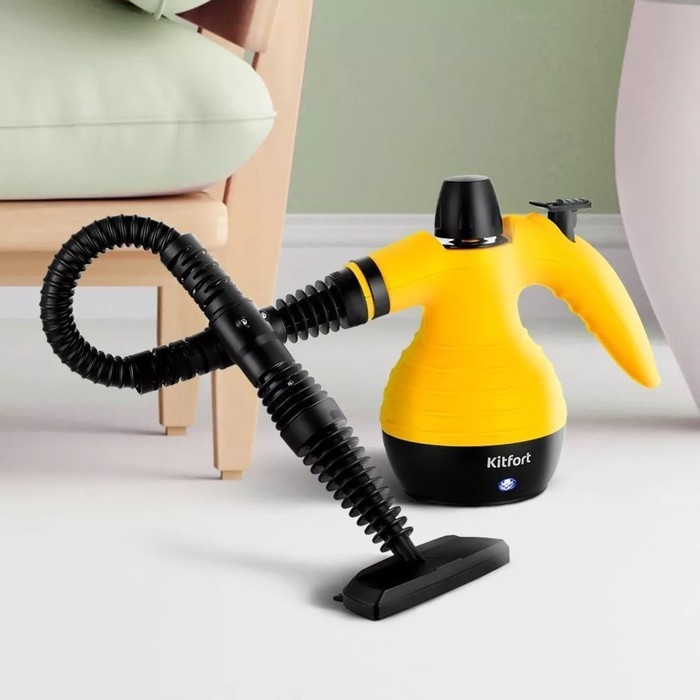 Пароочиститель Kitfort KT-9193-3, 1050 Вт, 0.35 л, 30 г/мин, нагрев 3 мин, чёрно-жёлтый