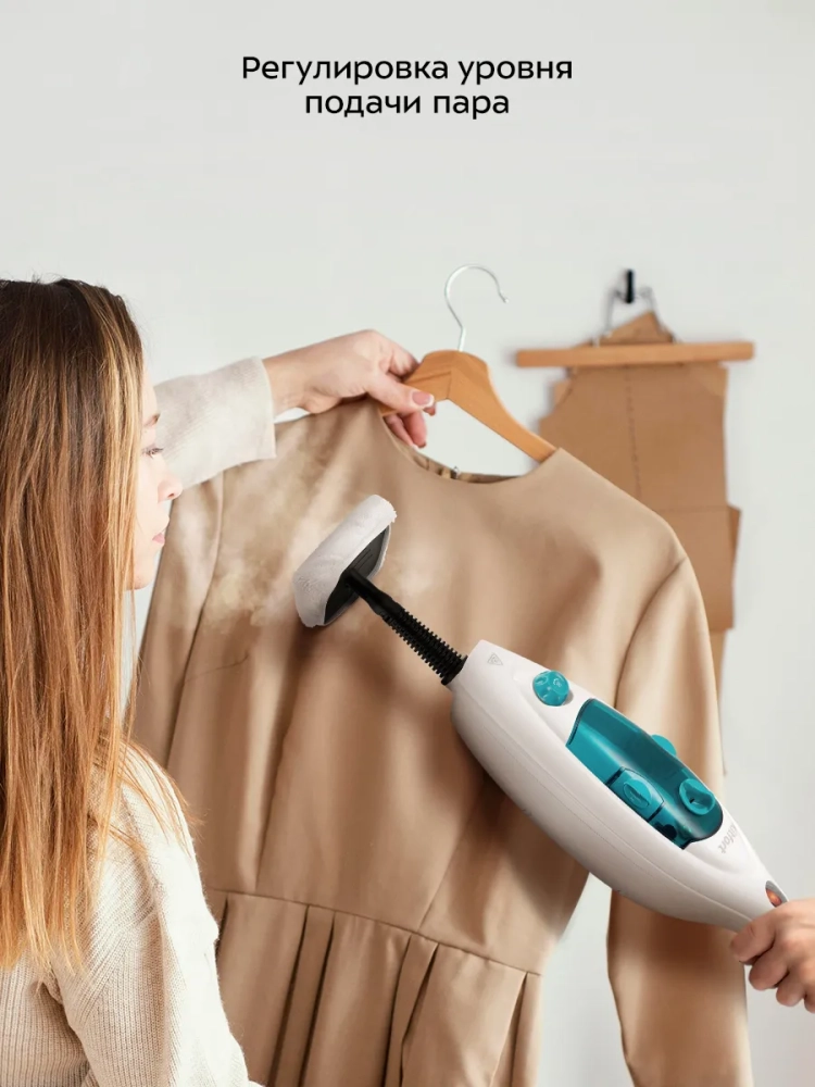 Устройство оснащено съемным резервуаром для воды емкостью 300 мл, что позволяет производить непрерывную уборку до 12–20 минут в зависимости от интенсивности выходящего пара. Регулятор подачи пара позволяет плавно настраивать интенсивность выходящего пара. Чем сильнее загрязнение, тем больше пара потребуется.