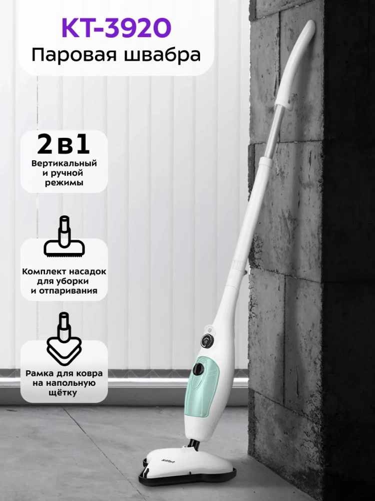 Паровая швабра КТ-3920 проста в использовании. Уборка с ней будет проходить быстро и легко.