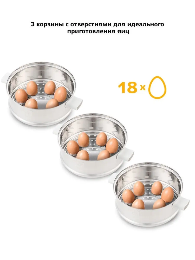 Уникальная конструкция пароварки позволяет начать приготовление уже через 20 секунд после запуска. Компактный нагревательный элемент, установленный в центре емкости для воды и закрытый ограничительным стаканом, потребляет всего 600 Вт и нагревает только объем воды находящийся вокруг нагревателя. По мере испарения из выравнивающего стакана, вода поступает к нагревателю тонкой струйкой через специальное отверстие в нижней части стакана. Это позволяет пароварке начать генерацию пара уже через 20 секунд и безостановочно подавать пар до окончания приготовления.