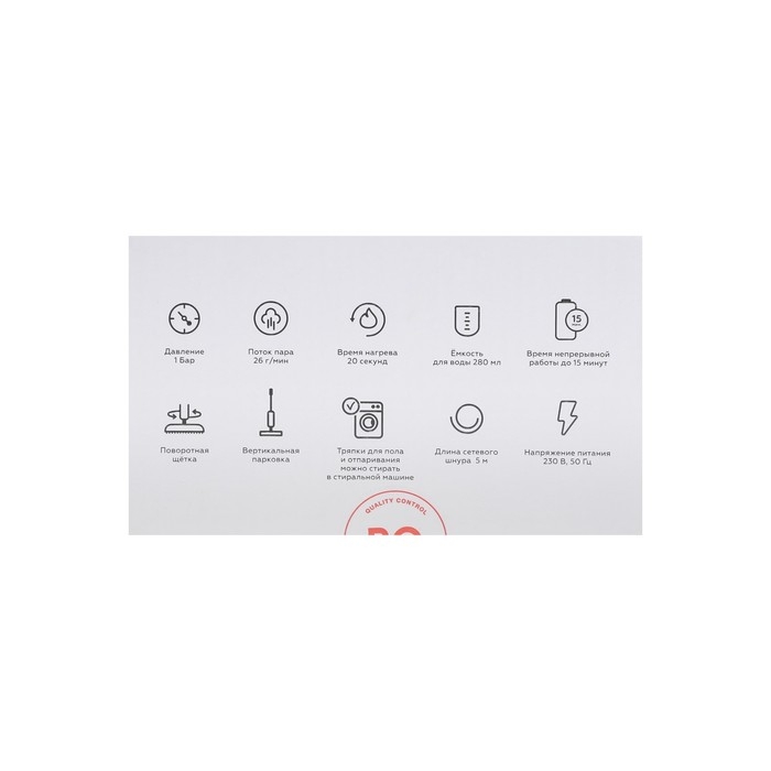Паровая швабра BQ SM1000, 1400 Вт, 280 мл, шнур 5 м, бело-чёрная