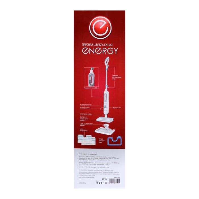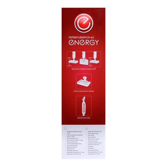 Паровая швабра Energy EN-643, 1400 Вт, 350 мл, шнур 5 м, бело-голубая