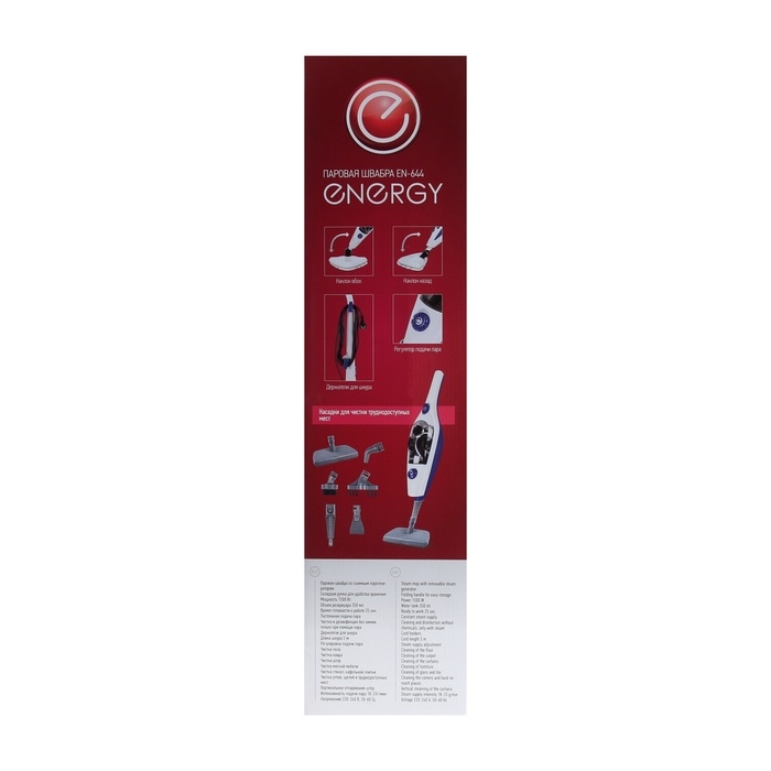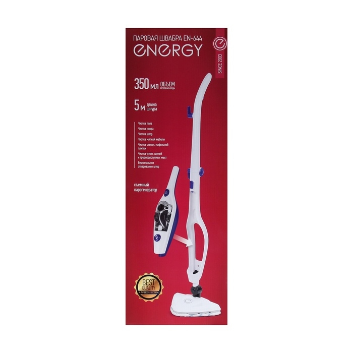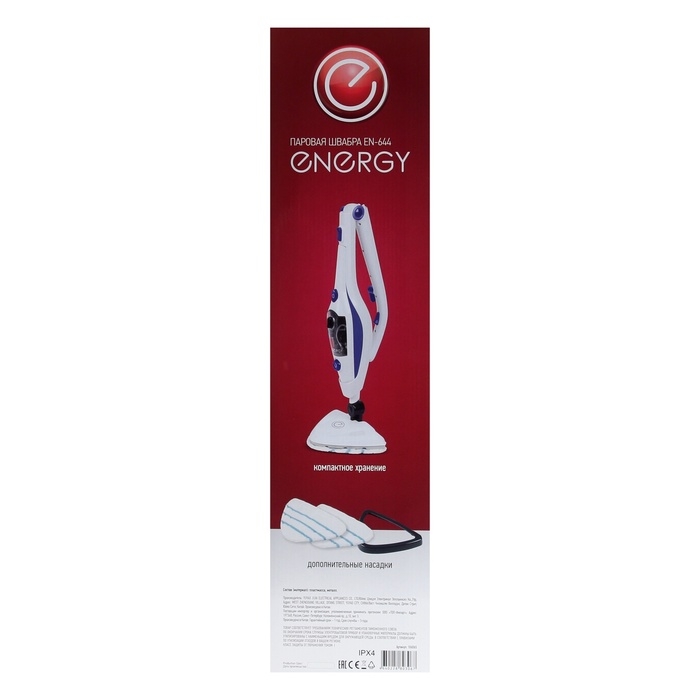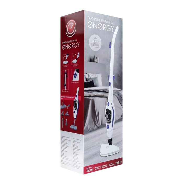 Паровая швабра Energy EN-644, 1500 Вт, 350 мл, шнур 5 м, бело-синяя