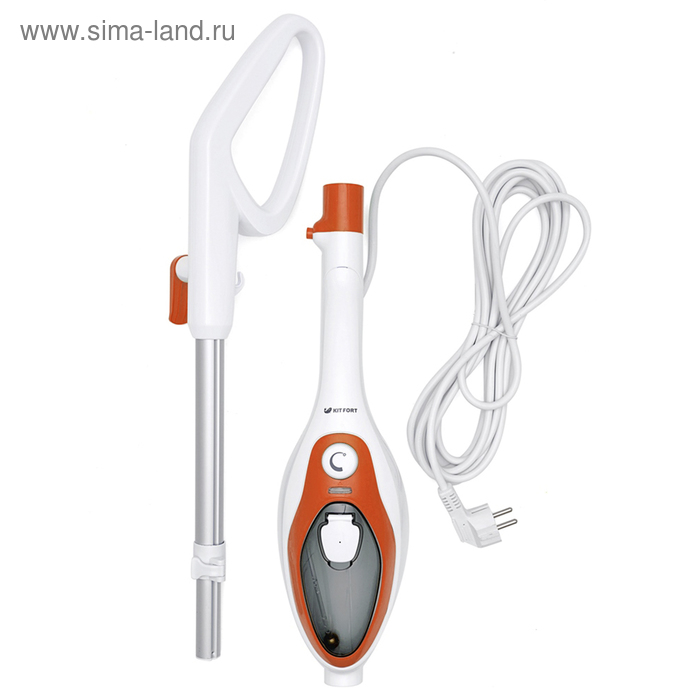 Паровая швабра Kitfort KT-1004-3, 1500 Вт, 350 мл, шнур 4.8 м, бело-оранжевая