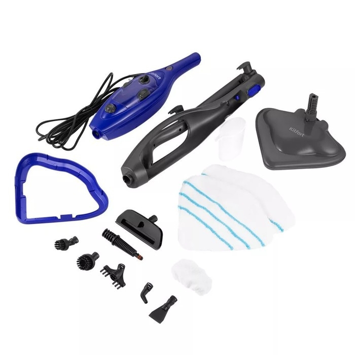 Паровая швабра Kitfort KT-1059, 1300 Вт, 300 мл, шнур 4.7 м, чёрно-синяя