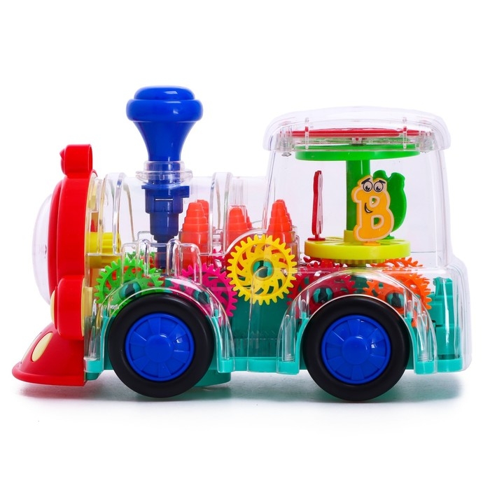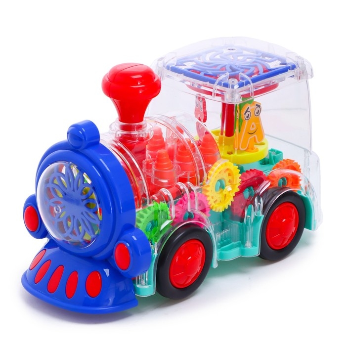Паровоз «Шестерёнки» создан для маленьких любителей техники. Он самостоятельно катается по полу благодаря специальному моторчику на батарейках. Во время игры кузов светится и крутятся шестерёнки.