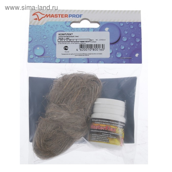 Комплект уплотнительной пасты со льном MasterProf используется вместе с льняными волокнами для уплотнения резьбовых соединений в трубопроводных системах с природным газом, газом бытового назначения и баллонным газом.