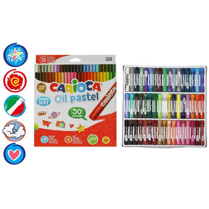 Пастель масляная 50 цветов, Carioca Oil Pastel, премиум яркая, супермягкая, картон, европодвес