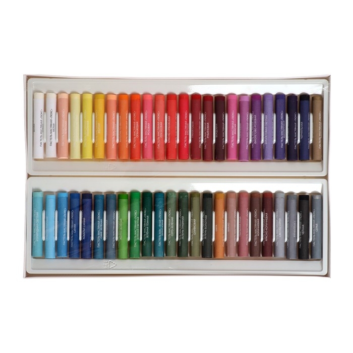 Состав пастели масляной "Люкс" в наборе 48 цветов: белая, жёлтая, красная, зелёная тёмная, синяя, чёрная, розовая, оранжевая, фиолетовая, коричневая, голубая, золотисто-жёлтая, рубиновая, фиолетово-розовая, зелень травяная, кобальт синий, охра, лимонная, красно-оранжевая, фиолетовая светлая, серая, сине-зелёная, телесная, бежевая, бордовая, фуксия, жёлто-зелёна, бирюзовая, красно-коричневая, лимонная светлая, небесно-голубая, белая, оливковая, изумрудная светлая, светло-серая, какао, гранатовая, серо-зелёная, зелень (болотная), сиреневая, серо-голубая, чернильная, лососевая, пыльная роза, фиолетовая темная, бронзовая, серебряная.