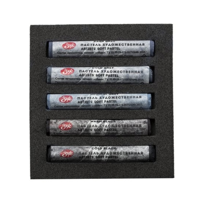 Пастель сухая набор 5 цветов, Soft, ЗХК "Сонет", D-10 мм /L-65 мм, круглое сечение, серые оттенки, 2531422206
