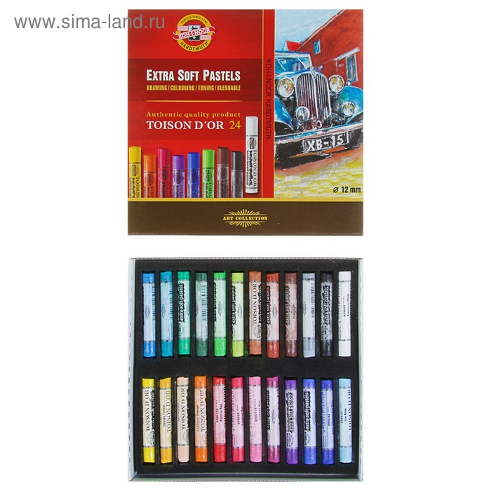 Пастель TOISON D`OR сухая, мягкая художественная, 24 цвета
