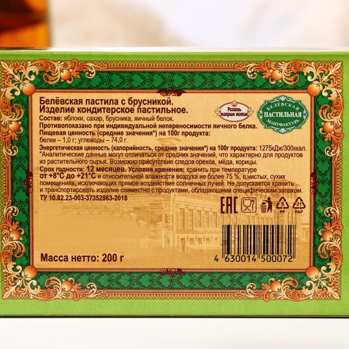 Пастила Белевская с брусникой, 200 г