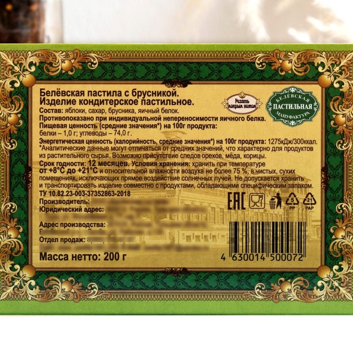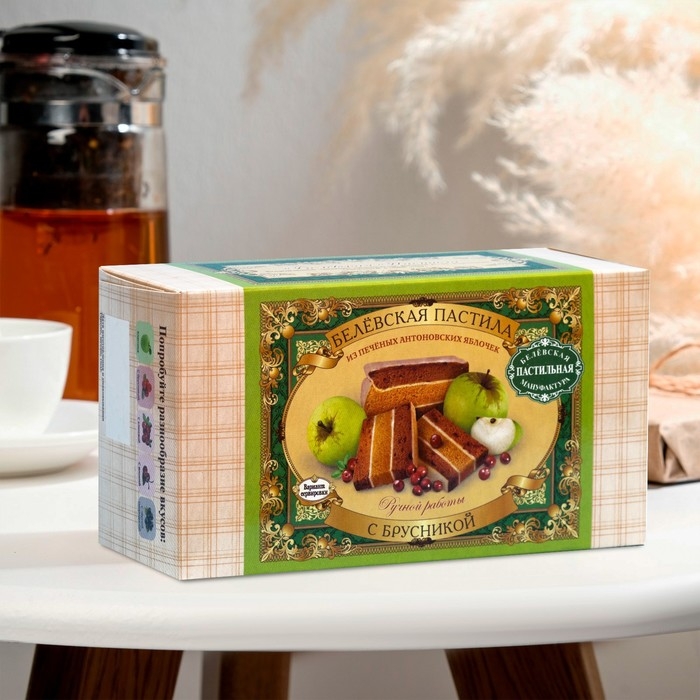 Состав: яблоки, брусника, сахар, яичный белок.