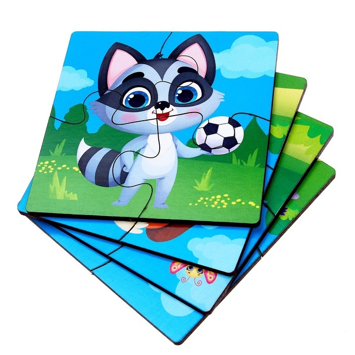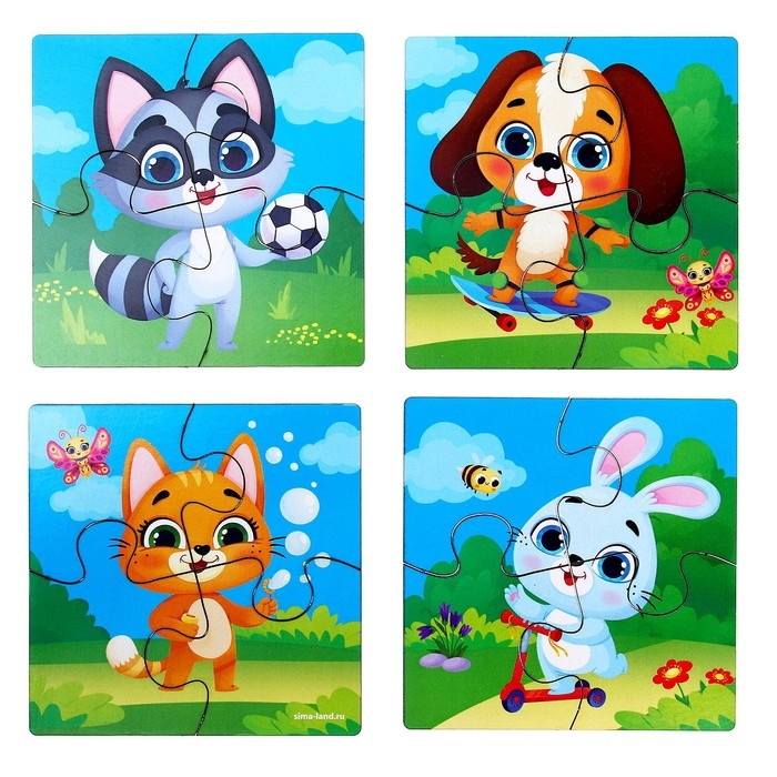 Яркий пазл подойдёт для самых маленьких деток, каждый их них состоит из четырёх элементов. Насыщенные цвета потренируют зрительное восприятие крохи. Расскажите ребёнку о временах года — это поможет развить кругозор малыша.