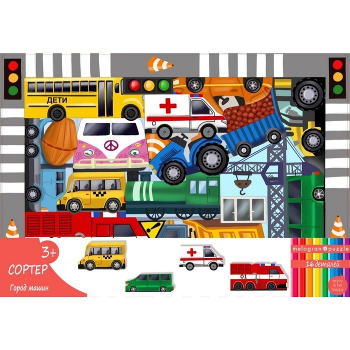 Пазл фигурный «Город машин» 16 деталей, 3+