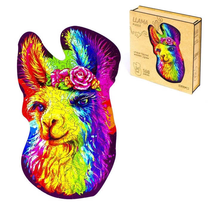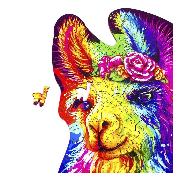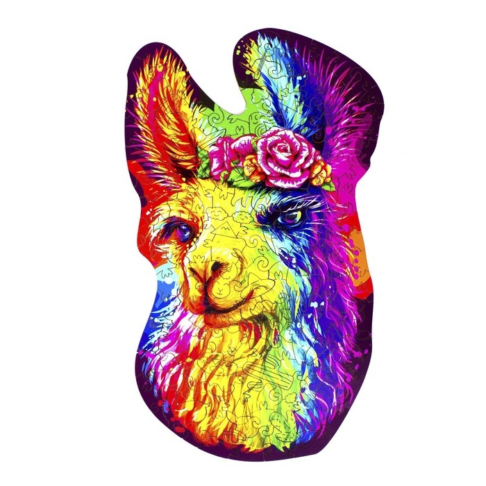Пазл фигурный «Лама» — это уникальное погружение в разноцветную атмосферу гармонии и фантазии!