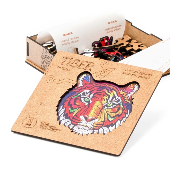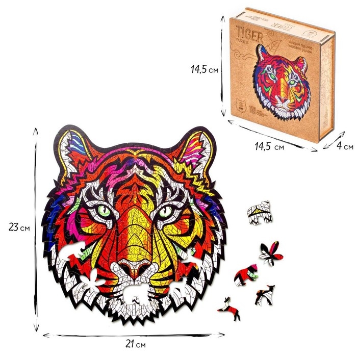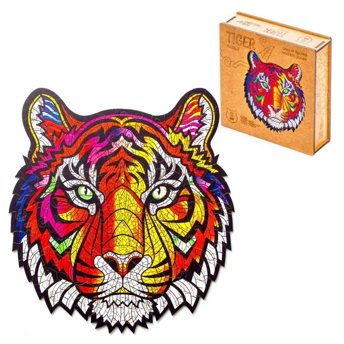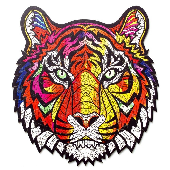 Пазл фигурный «Тигр» — это уникальное погружение в разноцветную атмосферу гармонии и фантазии!
