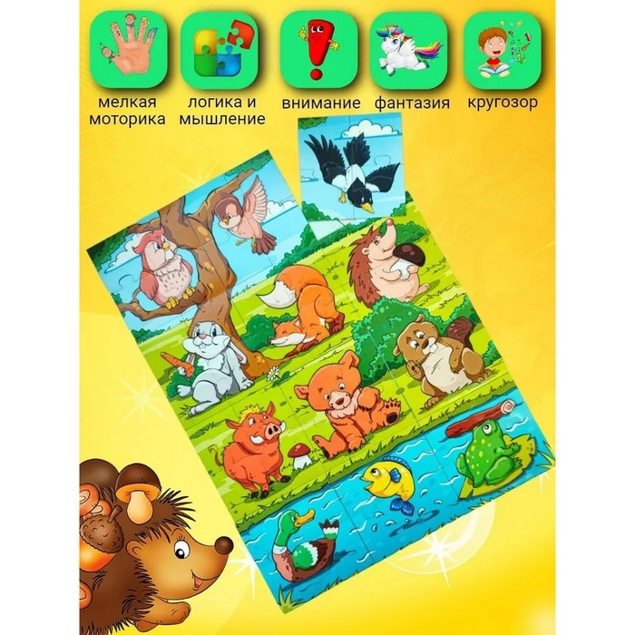Макси-пазлы «Весёлые зверята», 5 пазлов, 10 деталей