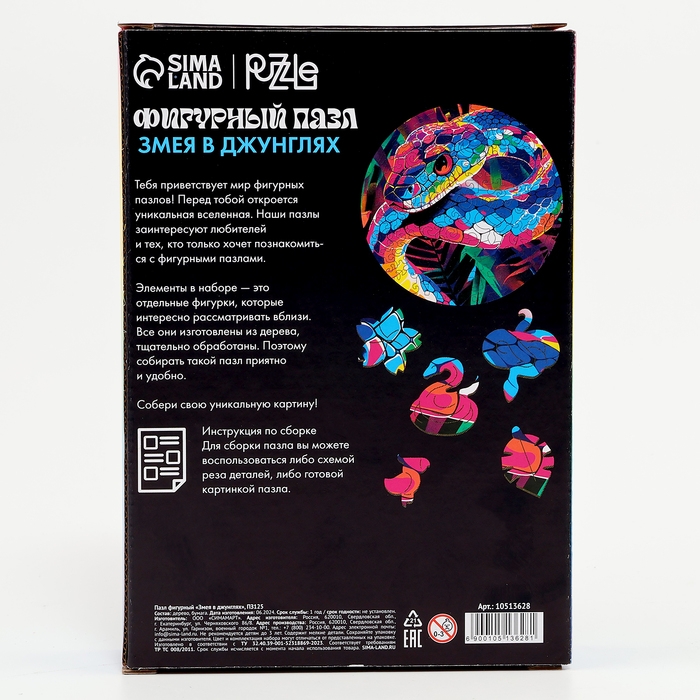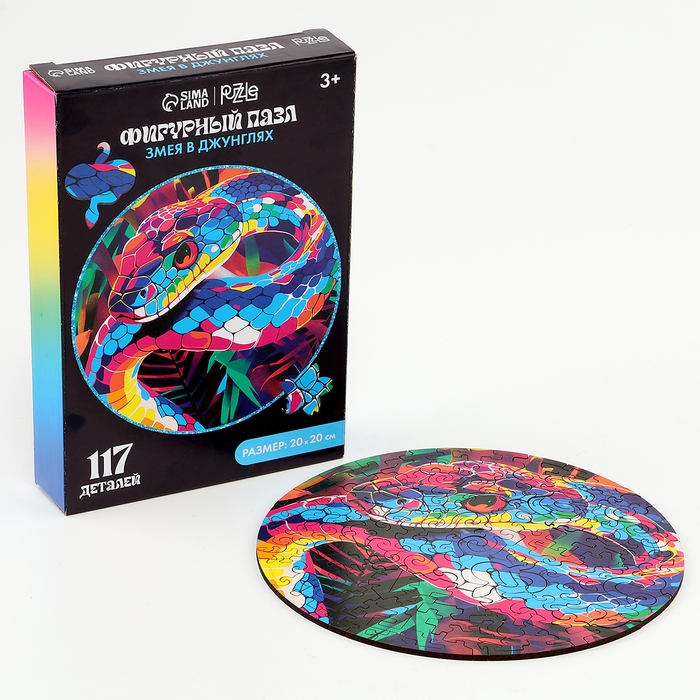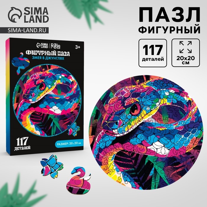 Пазлы фигурные деревянные «Змея в джунглях», 117 элементов, символ года 2025