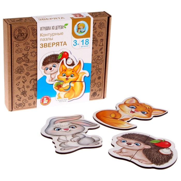 Пазлы из дерева «Контурные пазлы» «Зверята» 18 элементов