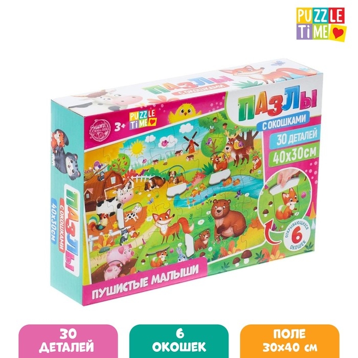 Пазлы с окошками «Пушистые малыши», 30 деталей