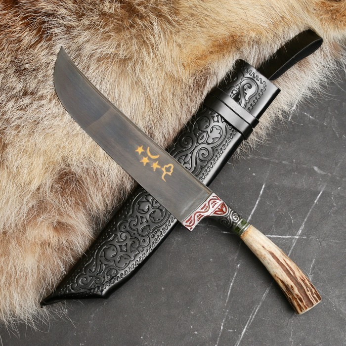 Пчак Шархон, рукоять из рога косули, гарда с гравировкой