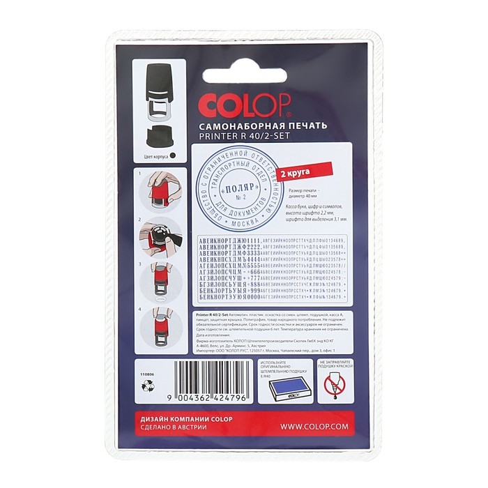 Печать автоматическая самонаборная COLOP Printer R 40/2-SET, диаметр 40 мм, 2 круга, касса А, чёрная