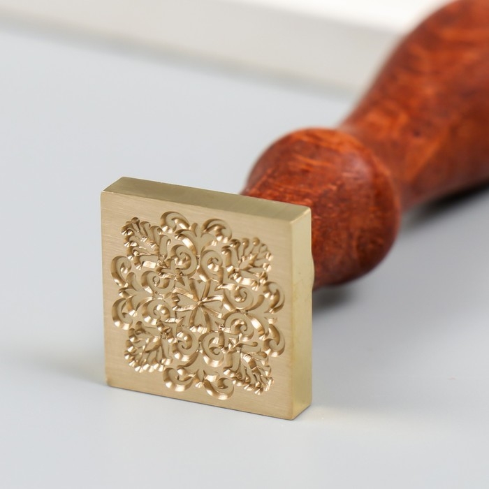 Печать для сургуча с деревянной ручкой "Цветочный орнамент" 9х2,2х2,2 см