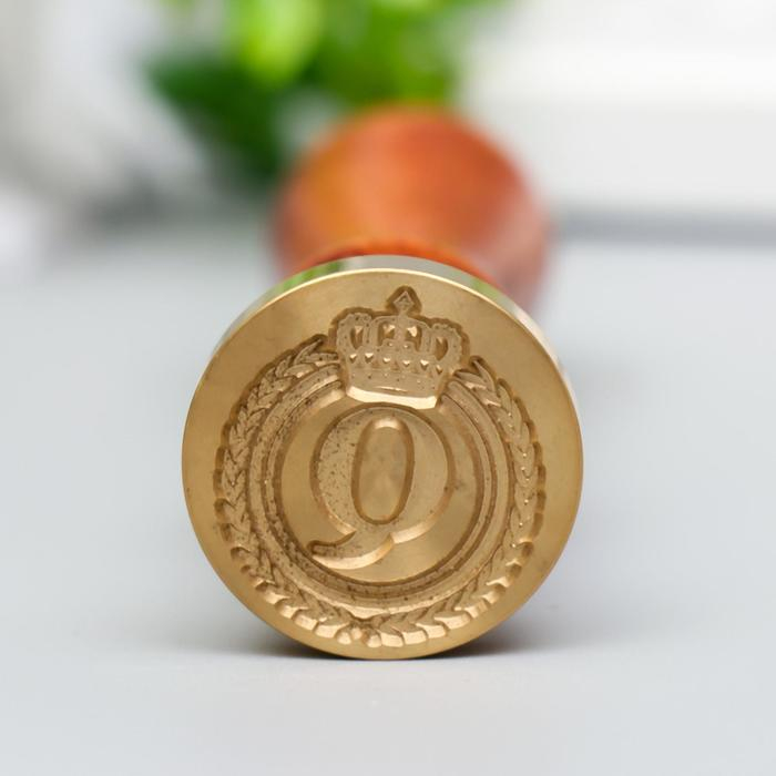 Печать для сургуча с деревянной ручкой "Корона с буквой Q" 9х2,5х2,5 см