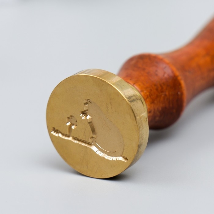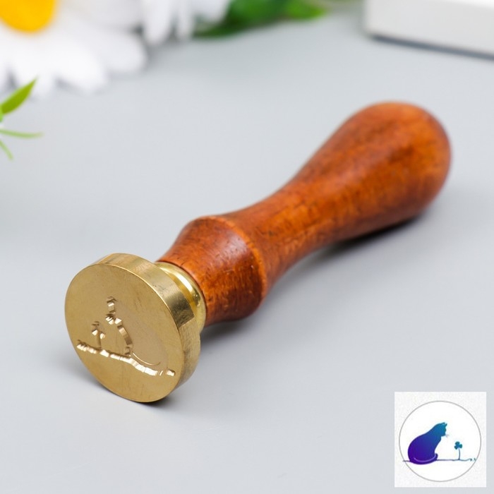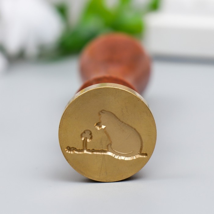 Печать для сургуча с деревянной ручкой "Кошка и цветок" 9х2,5х2,5 см