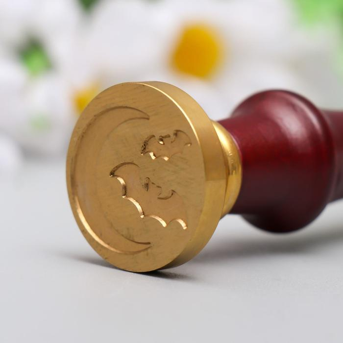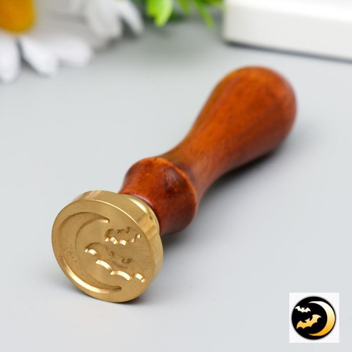 Печать для сургуча с деревянной ручкой "Летучие мыши и месяц" 9х2,5х2,5 см