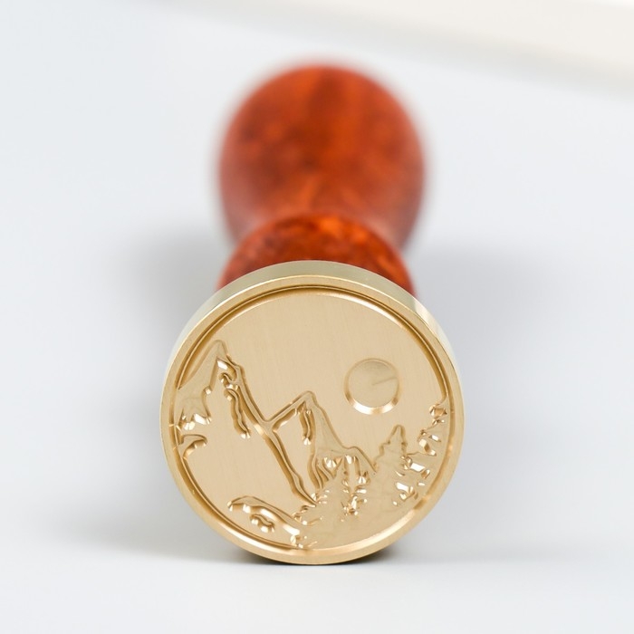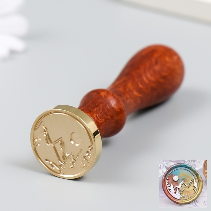 Печать для сургуча с деревянной ручкой "Лунная ночь в горах" 9х2,5х2,5 см