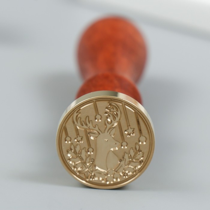 Печать для сургуча с деревянной ручкой "Рождественский олень" 9х2,5х2,5 см