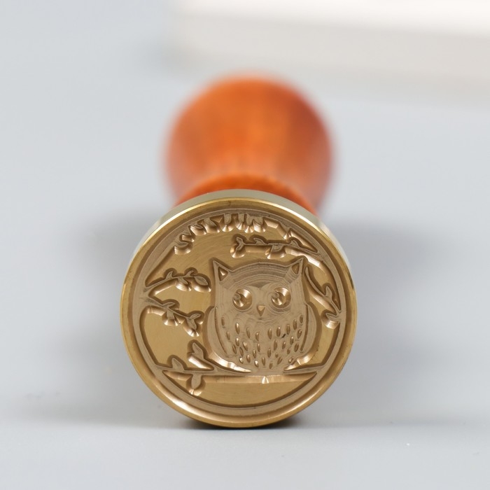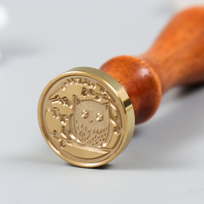 Печать для сургуча с деревянной ручкой "Совёнок на веточке" 9х2,5х2,5 см
