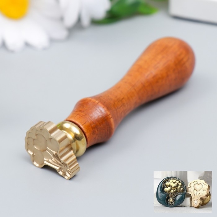 Печать фигурная для сургуча с деревянной ручкой "Связка шаров-сердечек" печать- 2,4х2 см, ручка 8,2