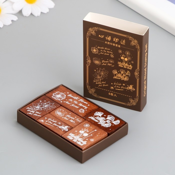 Печати дерево, резина "Язык цветов" набор 6 шт 9,6х6,6х1,6 см