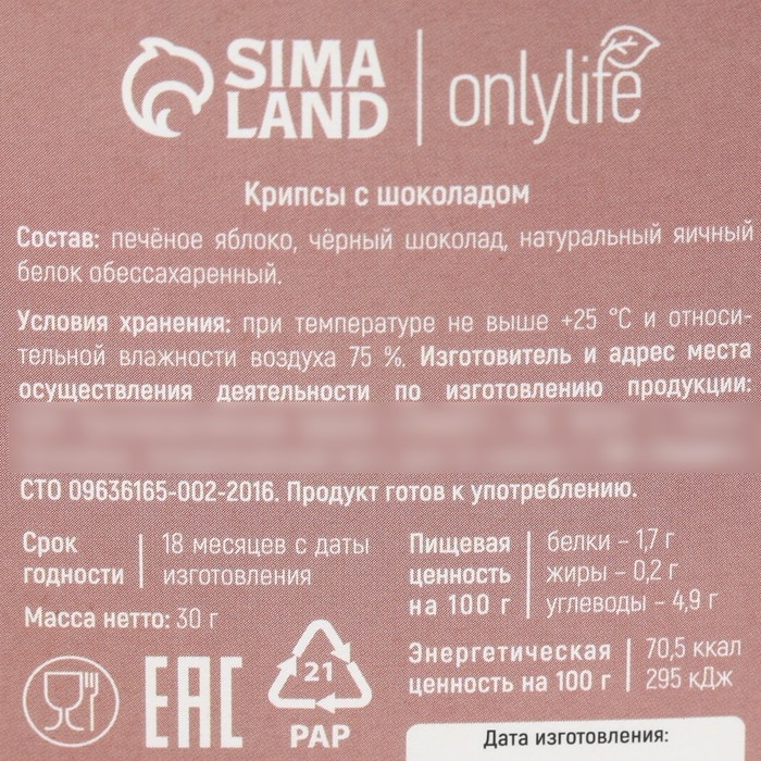 Состав: печёное яблоко, чёрный шоколад, натуральный яичный белок обессахаренный.