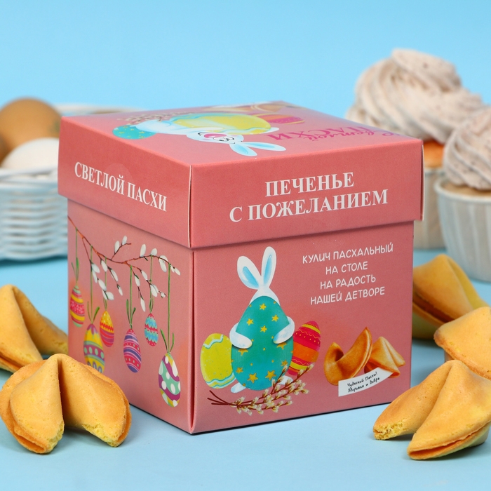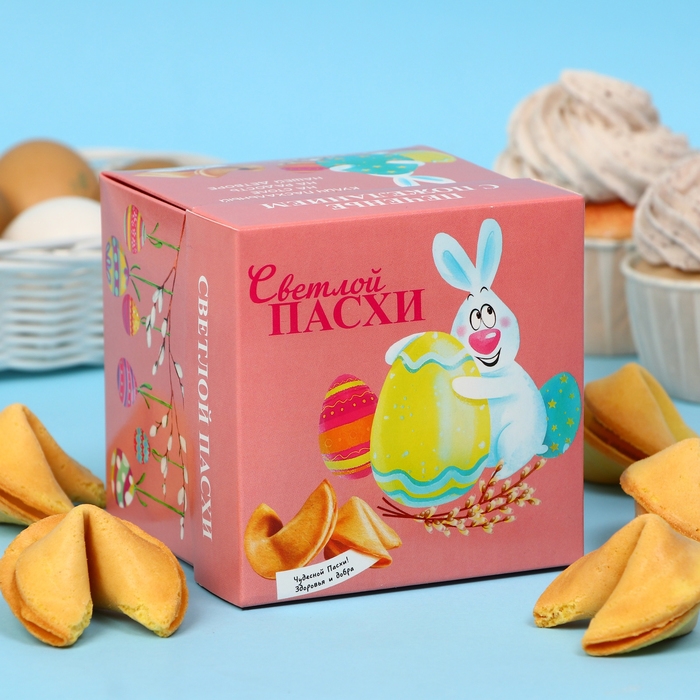 Печенье с пасхальными пожеланиями 35 г, "Светлой Пасхи" (нежно-розовый), 5 штук в упаковке