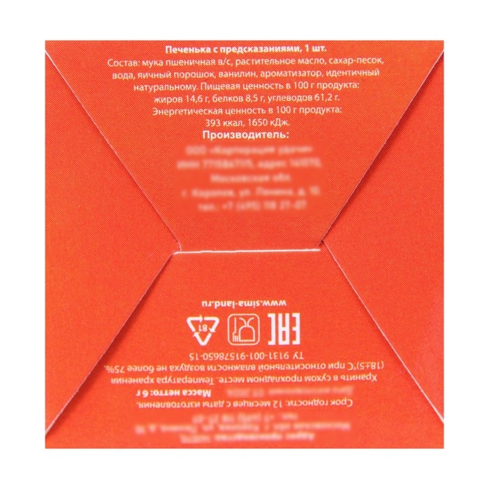 Печенье песочное с предсказаниями "Стандарт", 12 шт., 84 г