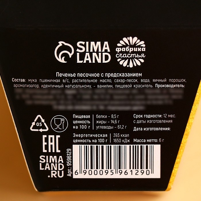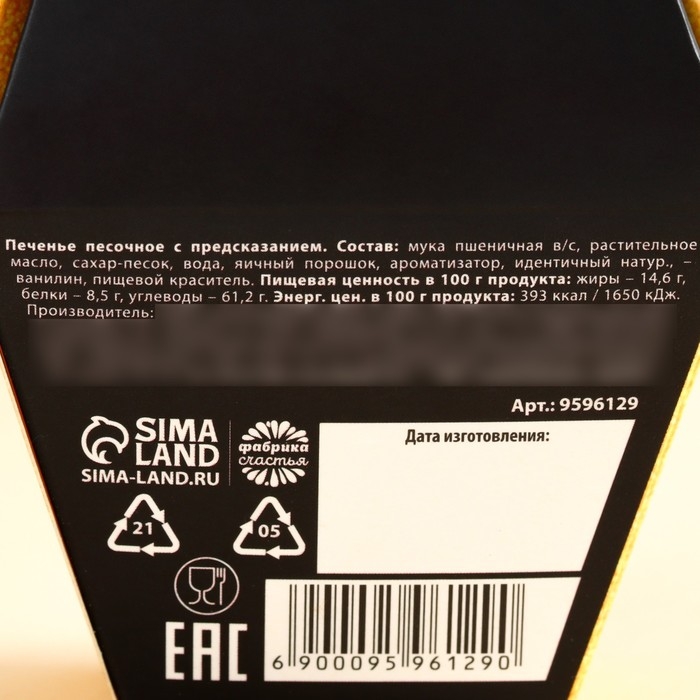 Печенье песочное с предсказаниями "Стандарт", 12 шт., 84 г
