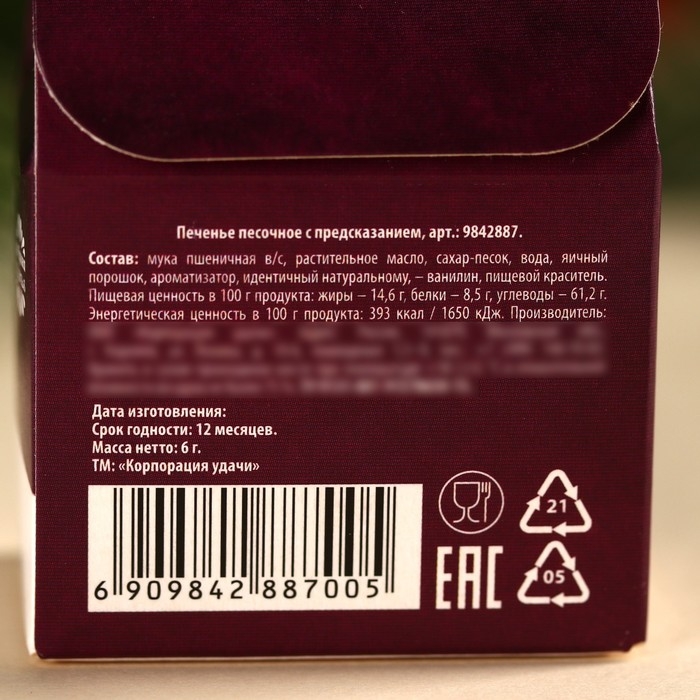 Печенье песочное с предсказаниями "Стандарт", 12 шт., 84 г