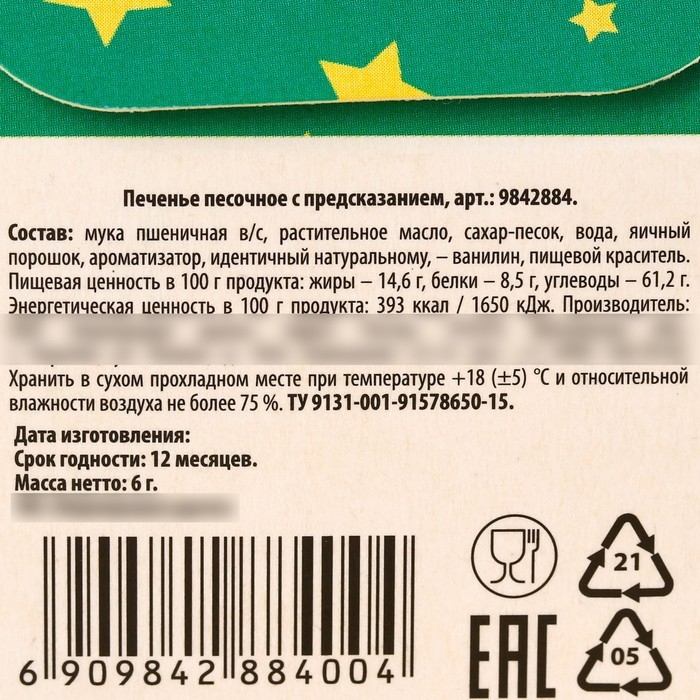 Печенье песочное с предсказаниями "Стандарт", 12 шт., 84 г