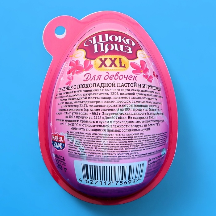 Печенье «Шокоприз XXL» с шоколадной пастой и игрушкой, яйцо-сюрприз, для девочек, 30 г