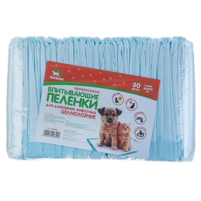Пеленки впитывающие "ПИЖОН" для животных целлюлозные, 60 х 90 см (в наборе 30 шт)