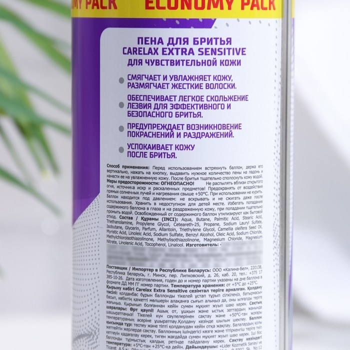 Пена для бритья Carelax extra sensitive для чувствительной кожи с витамином Е.